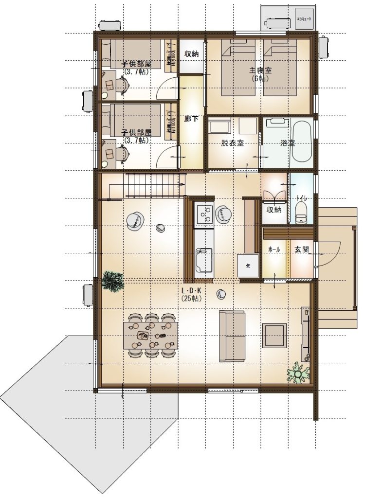 ご提案プラン①に和室コーナーをLDK横に設け、