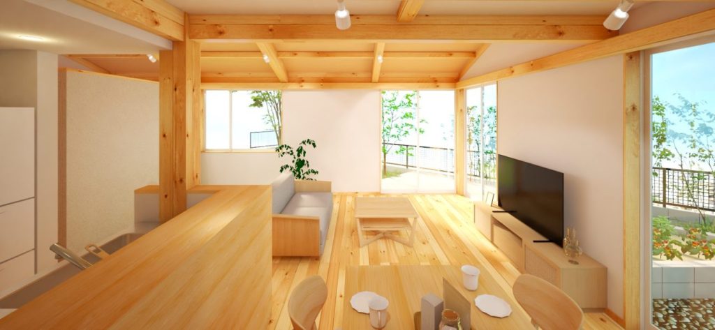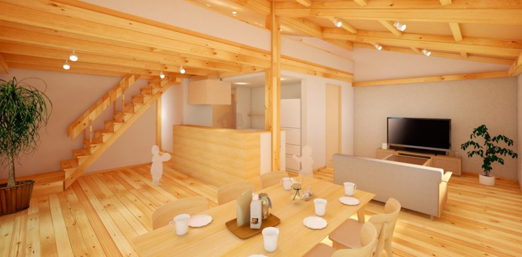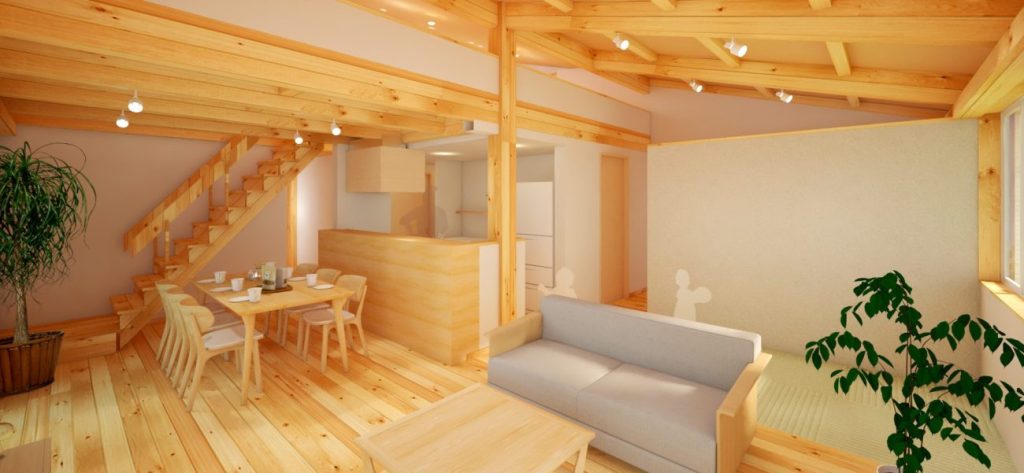 廊下や仕切り壁を少なくした設計で、家族の気配を感じられる住まいに。